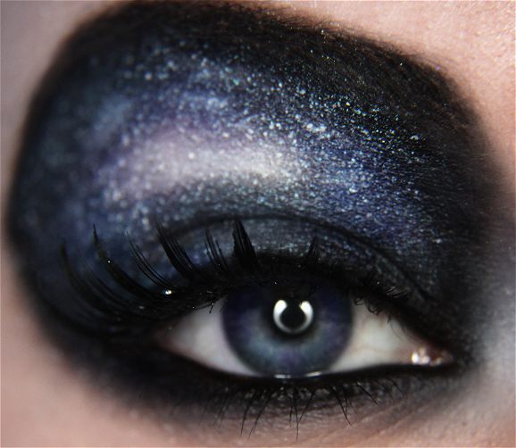 Sexy Black & White Smoky Eyes with Glitter (Galaxy Makeup