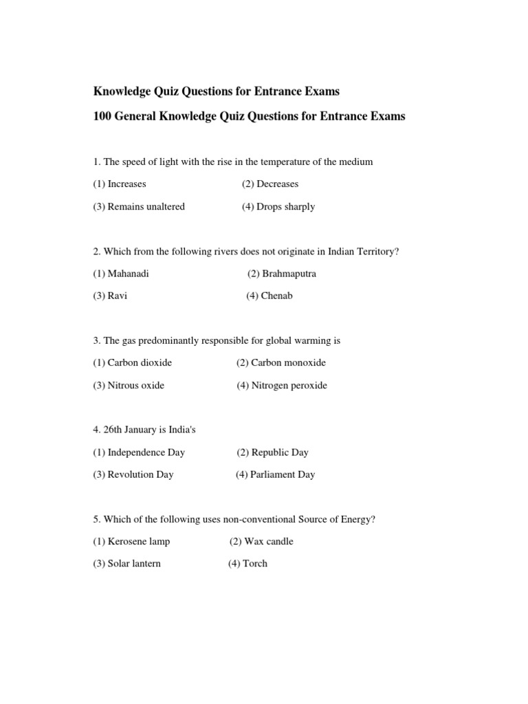 100 General Knowledge Quiz Questions for Entrance Exams